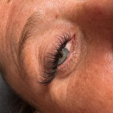 Multiple extensions are attached to natural lashes to give dimension and texture for longer and fuller appearance.